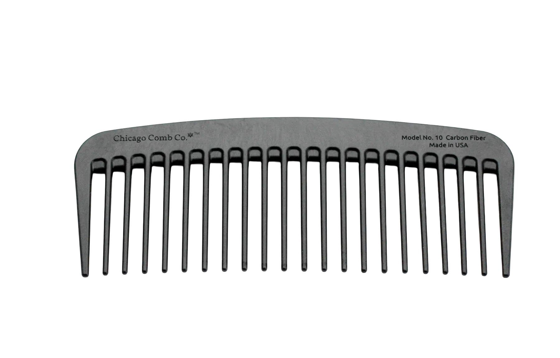 Chicago Comb Model 10 Carbon Fiber is a uniquely versatile compact wide tooth comb, perfect for both men and women. Its long, smooth teeth are ideal for detangling and combing long, curly, and natural hair, as well as large beards. 5 inches (12.7 cm) long.